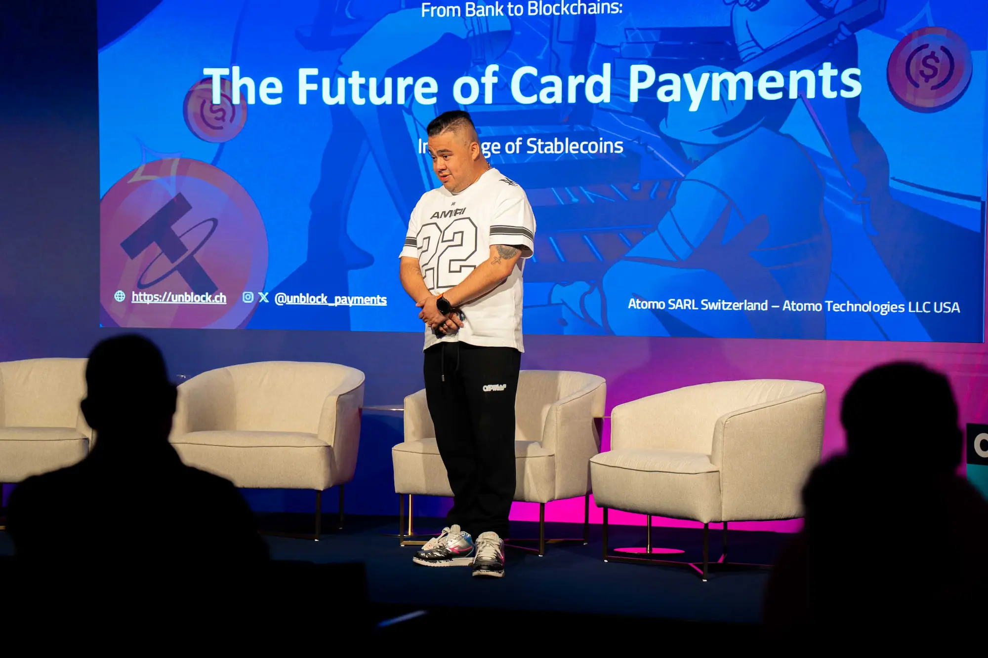 One of the most exciting sessions was “From Banks to Blockchains: The Future of Card Payments in the Age of Stablecoins” with insights from Oscar Flores (CEO, Unblock Payments) and Jonathan “Jony” Palacios.The subsequent panel on stablecoins (“The New Rails: Stablecoins Leading the Next Era of Transactions & PayFi”) provided valuable perspectives on how stablecoins are reshaping financial infrastructures and the future of PayFi. A key point of discussion was the dominance of USD-denominated stablecoins, raising important questions about balance, resilience, and innovation in the global market.The conversation highlighted both opportunities and challenges, underlining the growing importance of stablecoins in Switzerland’s evolving crypto landscape.